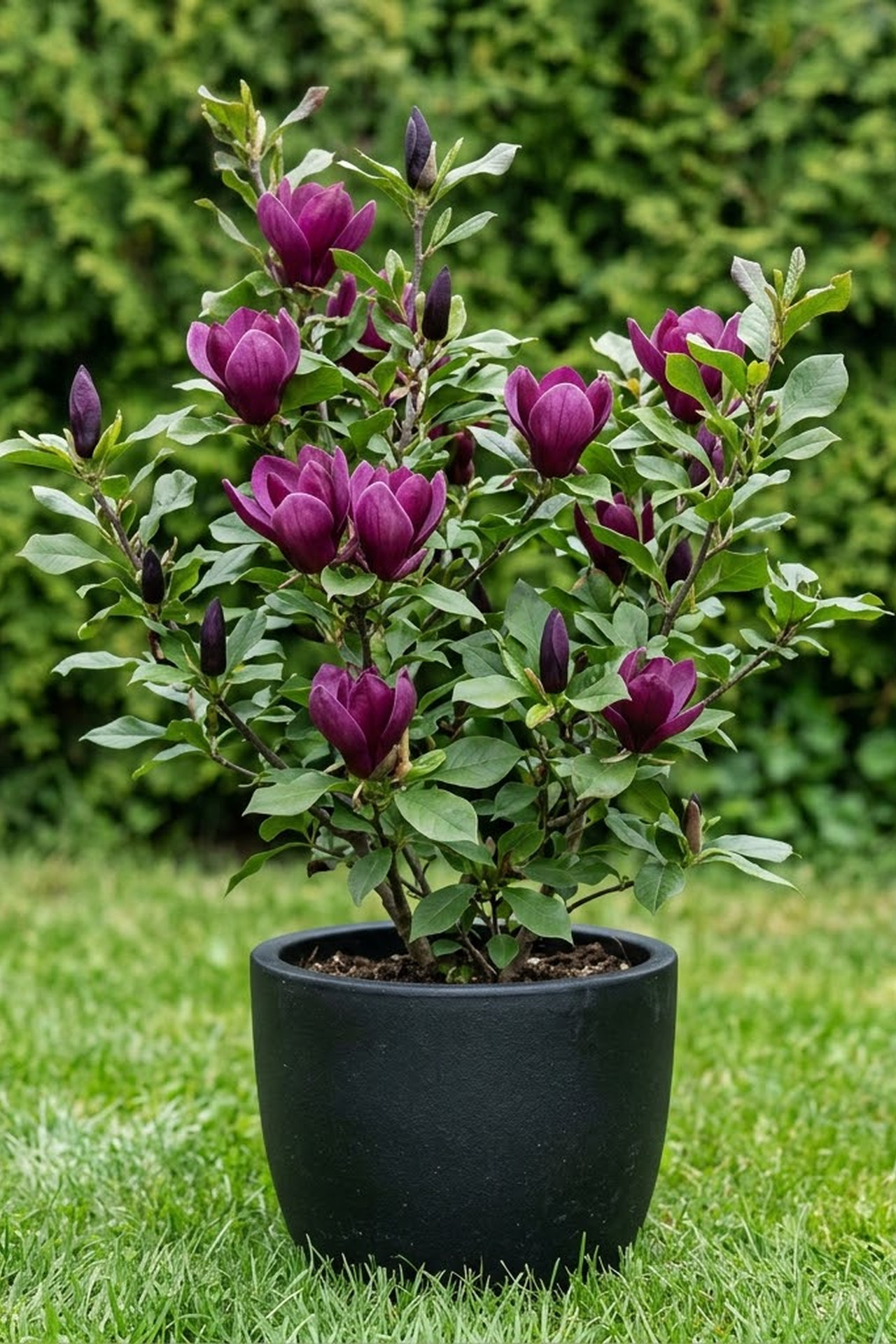 Магнолия "Nigra» является средним кустарников лиственных размер которой возрастает с 3 до 4,5 метров в высоту и ширину с прямой и разветвленной ствола, который производит середины до темно-зеленые листья, опушенные на нижней сужается в точку. Она производит ароматные, крупные, ,фиолетового цветов, которые бледно фиолетовые внутри и несет среди листьев с середины весны до середины лета. Морозостойкая.компактный сорт с темно-фиолетовым-красным цветами, которые появляются с раннего возраста.