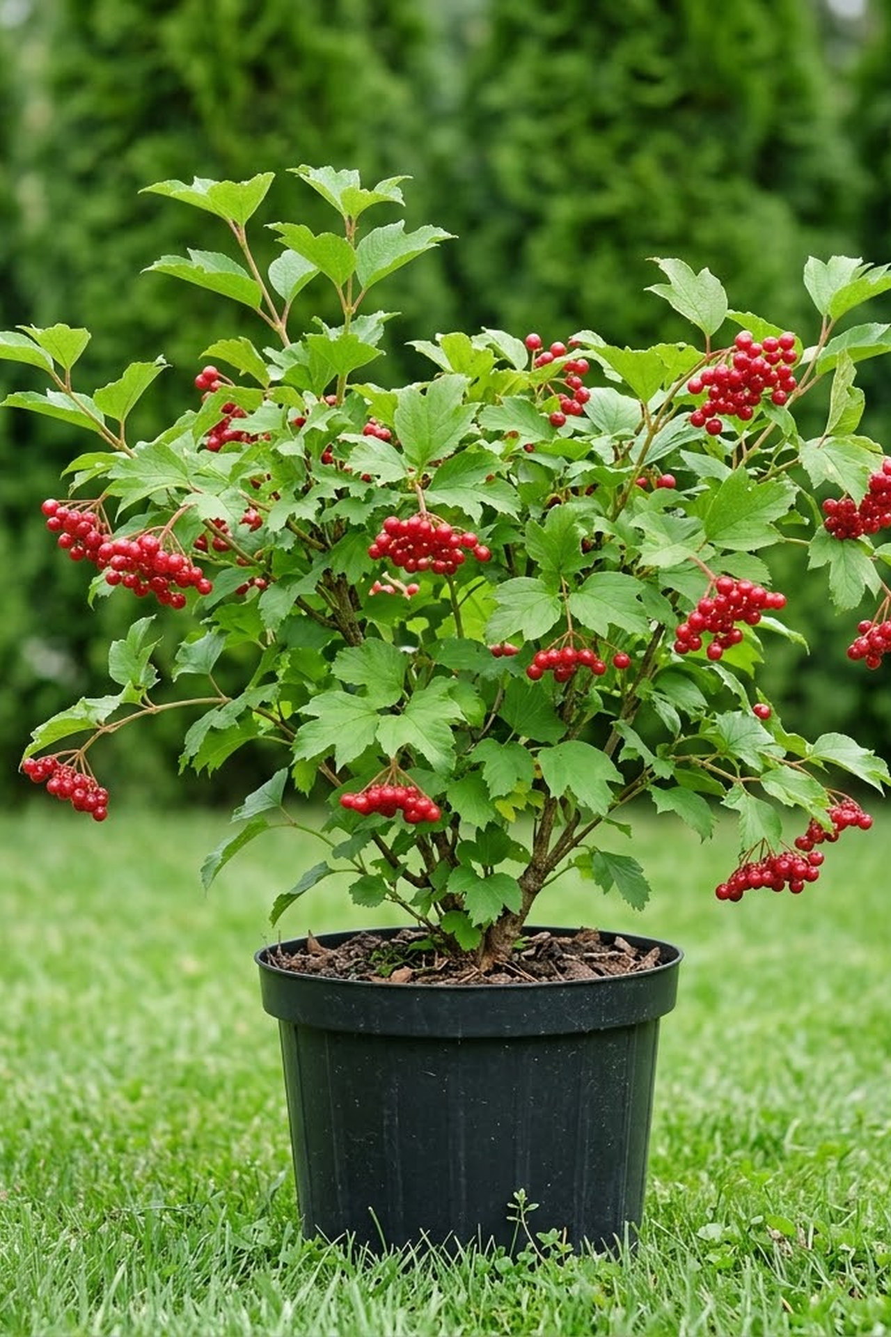 Крупный, широкий, вертикально растущий кустарник или деревце; часто образует заросли. Высота и ширина от 2 х до 5 м. Листья Трех- или пяти-лопастные, похожи на кленовые, зеленые, осенью оранжево-красные . Чувствительна к повышенным температурам и засухе, предпочитает достаточно увлажненные почвы, от нейтральных до сильно щелочных. Зимостойка.