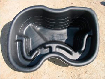 Декоративный садовый пластиковый пруд. Объём: 150л. Имеет несколько уровней глубины, а также мелководную зону, для создания отмелей и расположения прибрежных растений. Цвет формы черный. Размеры: 1200x 900 x 400мм.