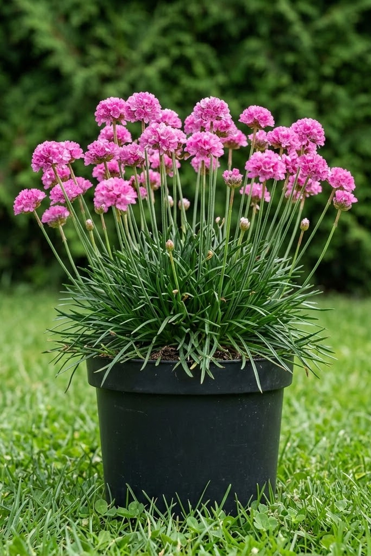 Листья темно-зеленые,похожие на траву.Образует небольшие кочки с большим количеством цветов. Цветки светло-розовые,шаровидные соцветия около 3 см в диаметре.Высота 20-30 см.Цветет в июле-августе.Не переносит тяжелых почв и сырых мест - загнивает.