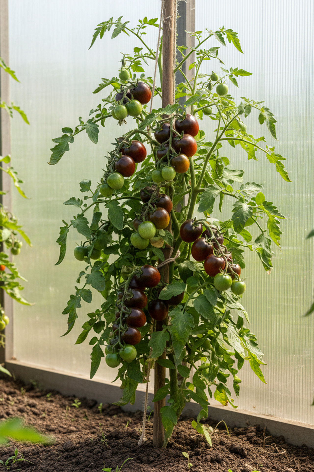 Среднеспелый сорт для пленочных теплиц. Период от высадки рассады до плодоношения 83-88 дней. Плоды плоскоокруглой формы ребристые, масса 140-160 г, отличного вкуса. Оригинальная окраска плодов от темно-красного до черного цвета. Сорт устойчив к альтернариозной пятнистости листьев, кладоспориозу, вирусу табачной мозаики. Салатное использование.